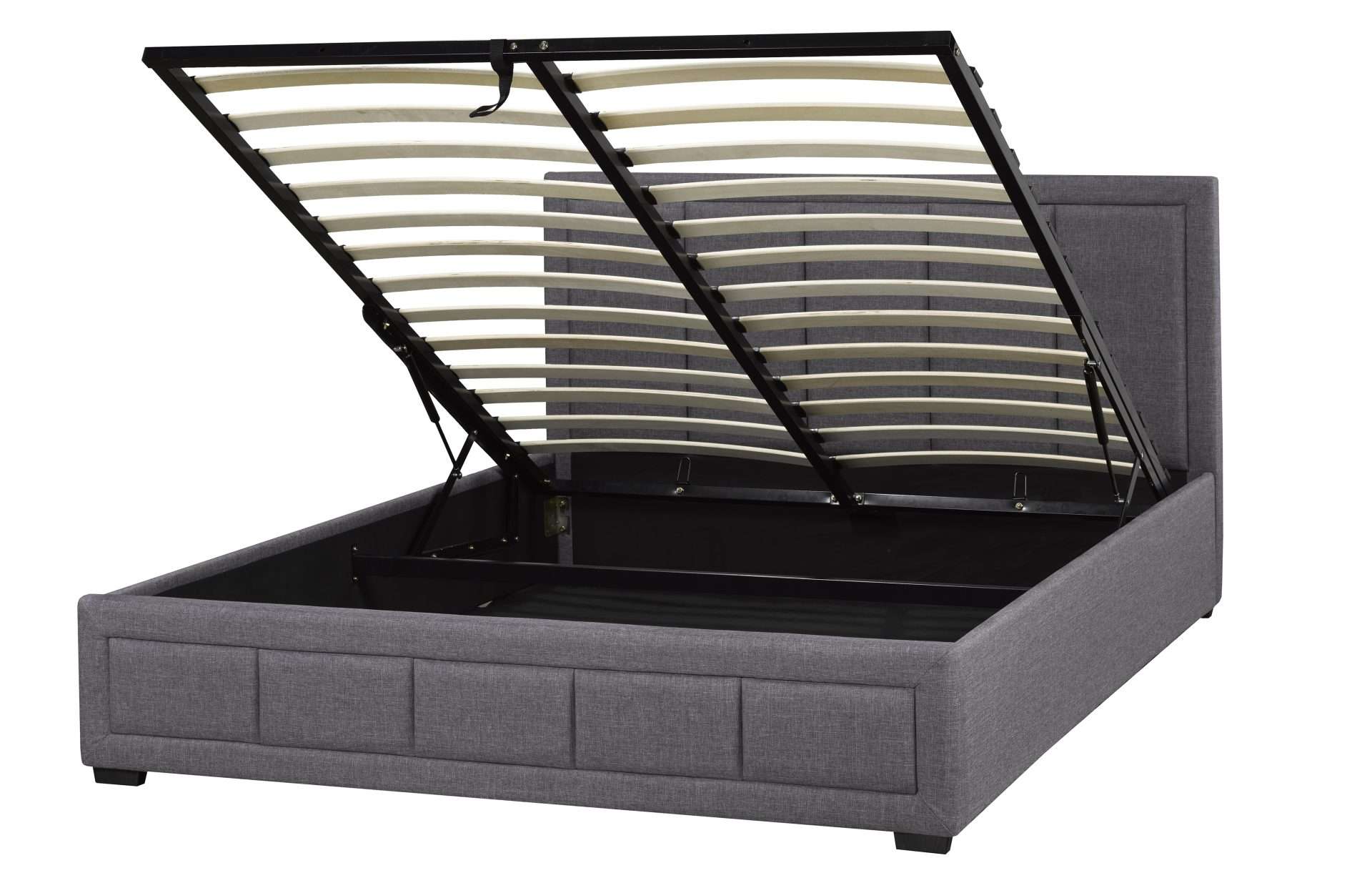Designed for practical living, the Westley features a hydraulic lift storage mechanism, allowing the platform base to lift up for discreet storage inside. This innovative solution provides ample space to stow away bedding, clothing, or other essentials, maintaining a clutter-free bedroom. The panel headboard, adorned with vertical lines, adds a touch of contemporary flair, creating a cohesive and visually appealing design. Crafted with a solid wood frame, the Westley Storage Bed ensures durability and longevity, making it a stylish and functional centerpiece for your bedroom. Elevate your bedroom aesthetics and storage solutions with the Westley Storage Bed.