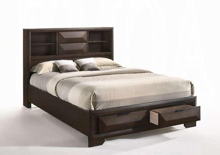 Introducing the Laura Storage Bed, a harmonious blend of functionality and timeless design. The platform base, eliminating the need for a box spring, establishes a contemporary foundation for your bedroom. The rich espresso color exudes warmth, adding a touch of sophistication to your sleep space.