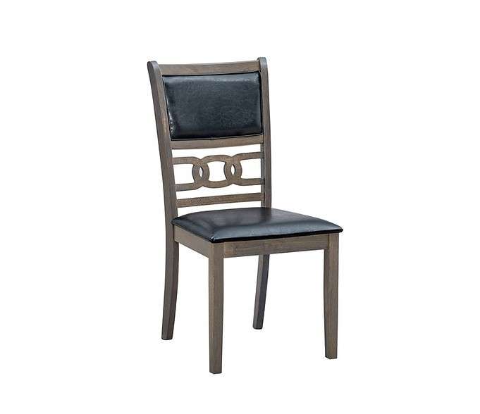 Enhance your dining area with this modern ladder back dining chair, designed to offer both comfort and style. The chair features a black PU upholstered cushion seat and back, providing a plush seating experience. Crafted from durable rubber wood, it ensures lasting sturdiness. Measuring 19'L x 21'W x 39'H, the chair fits perfectly in various dining spaces. The antique grey frame adds a touch of vintage charm, while the ladder back design gives it a contemporary edge. This chair seamlessly blends modern aesthetics with classic elements, making it an excellent addition to any dining room.