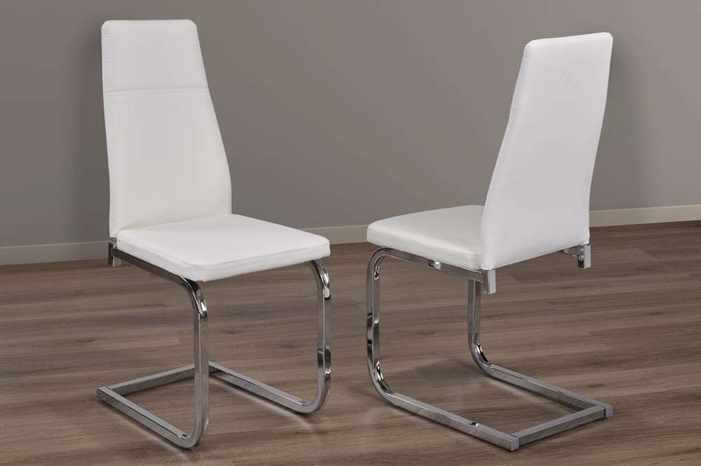 LUXURIOUS FABRIC: Choose between white PU or grey linen chairs with chrome legs to suit your style and desire. A padded chair back and seat adds comfort for a seamless and enjoyable dining experience.
