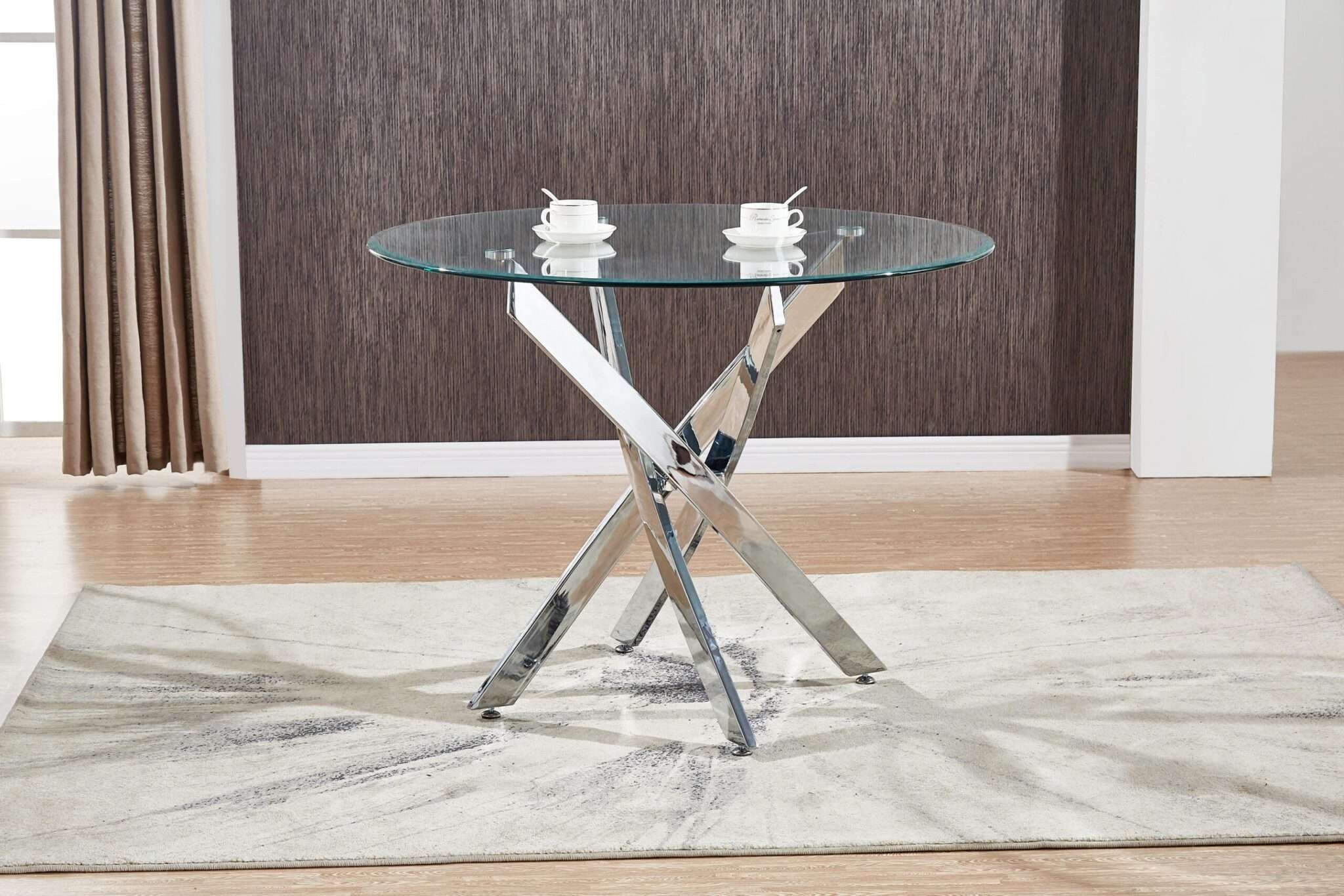 Elevate your dining experience with this modern dining table, featuring a sleek 10mm tempered clear glass top. The tempered glass provides a durable and stylish surface that is easy to clean and maintain. Supported by sturdy chrome legs, this table offers both stability and a contemporary aesthetic. The chrome legs add a touch of elegance and shine, complementing the clear glass top perfectly. Ideal for any dining space, this table seamlessly blends functionality with sophisticated design, making it a perfect centerpiece for family meals and entertaining guests.
