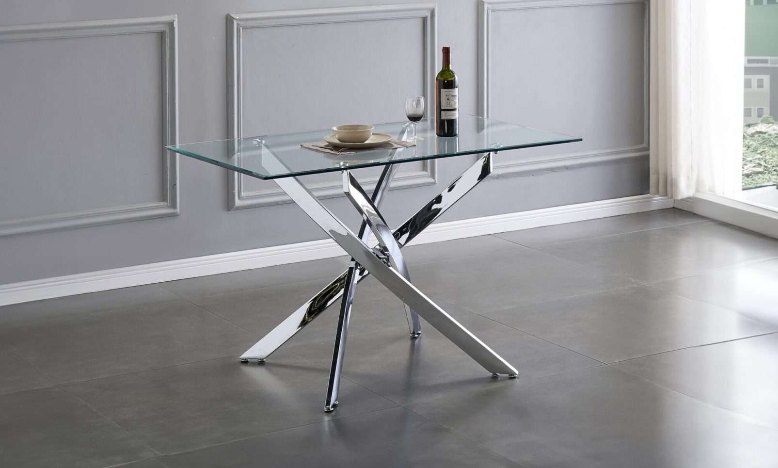 Elevate your dining experience with this modern dining table, featuring a sleek tempered clear glass top. The tempered glass provides a durable and stylish surface that is easy to clean and maintain. Supported by sturdy chrome legs, this table offers both stability and a contemporary aesthetic. The chrome legs add a touch of elegance and shine, complementing the clear glass top perfectly. Ideal for any dining space, this table seamlessly blends functionality with sophisticated design, making it a perfect centerpiece for family meals and entertaining guests.