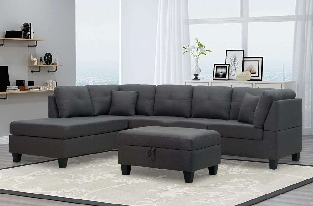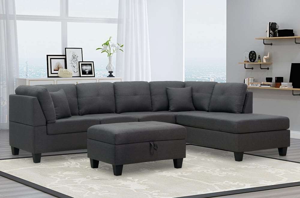 Wrapped in chic charcoal linen fabric, this sectional brings a modern touch to any room. The rich, neutral hue blends seamlessly with various decor styles, adding a layer of sophistication to your space. Its durable, textured fabric is both stylish and practical, providing comfort while maintaining an elegant appearance.