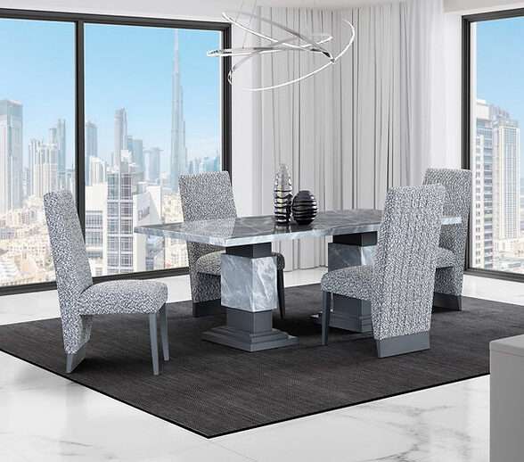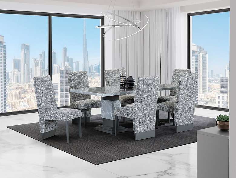 Transform your dining area with the CFI-1600 82″ Faux Grey Marble Dining Set, featuring a stunning faux grey marble tabletop and sleek double pedestal base. This modern design not only exudes elegance but also offers a durable surface perfect for everyday meals and special gatherings.