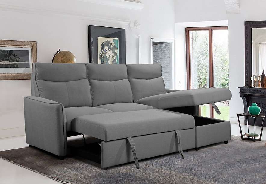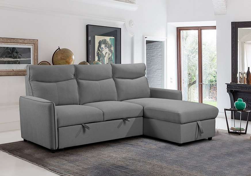 Introducing the CFI-9027 Grey Linen Reversible Sofa Bed Sectional w/ Storage, a perfect blend of style and functionality. This sleek piece features a reversible chaise, allowing you to configure it to suit your space. Upholstered in soft linen fabric in a timeless grey hue, it effortlessly complements any decor style.
