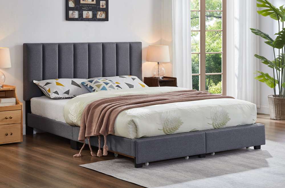 Designed for convenience, the T-2120 features two discreet storage drawers in the front, offering ample space to keep your bedroom organized. The panel headboard, embellished with vertical lines from top to bottom, adds a touch of visual interest and complements the overall design. Crafted with a solid wood frame, the T-2120 ensures durability and longevity, making it a reliable centerpiece for your bedroom. Elevate your sleep sanctuary with the T-2120 Storage Bed, where plush linen, contemporary aesthetics, and intelligent storage solutions converge for an exceptional blend of style and functionality.