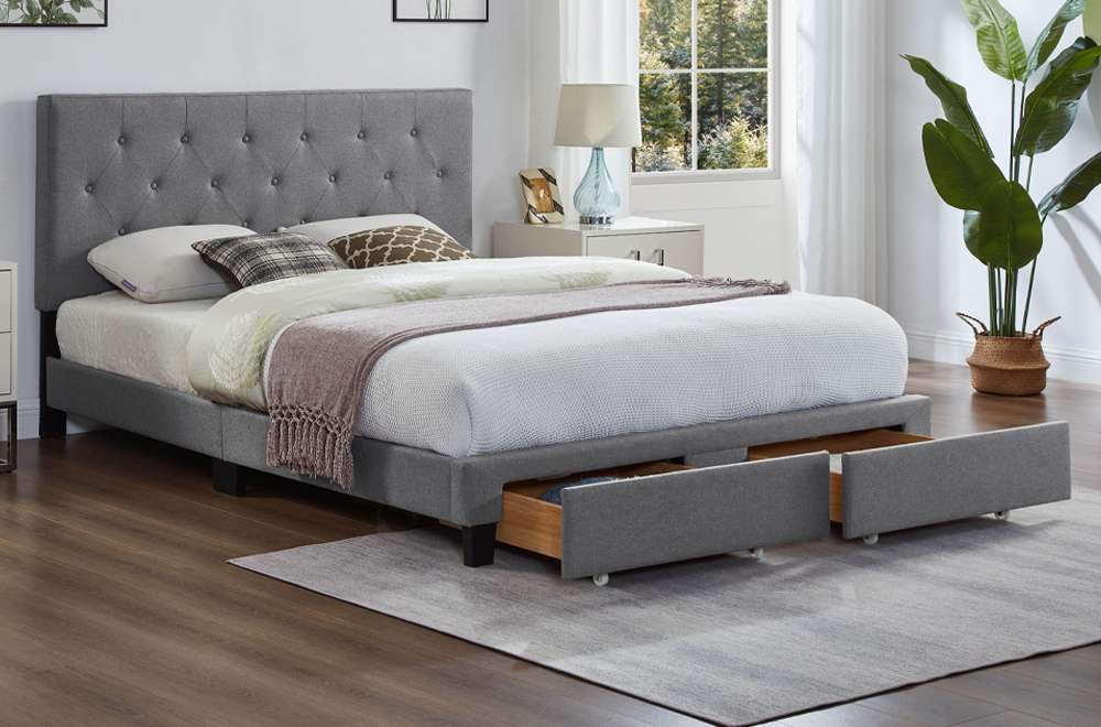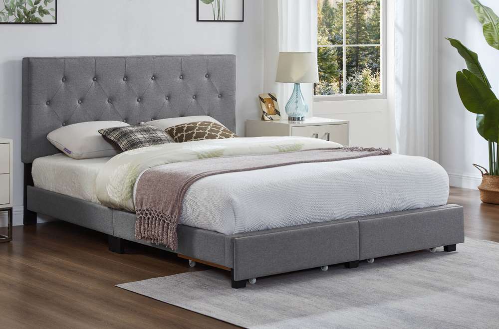 Designed with convenience in mind, the T-2125 features two discreet storage drawers in the front, providing ample space to keep your bedroom organized and clutter-free. The tufted headboard adds a touch of elegance, creating a plush and inviting ambiance. Crafted with a solid wood frame, the T-2125 ensures durability and longevity, making it a reliable centerpiece for your bedroom. Elevate your sleep sanctuary with the T-2125 Storage Bed, where plush linen, timeless design, and intelligent storage solutions converge for an exceptional blend of style and functionality.