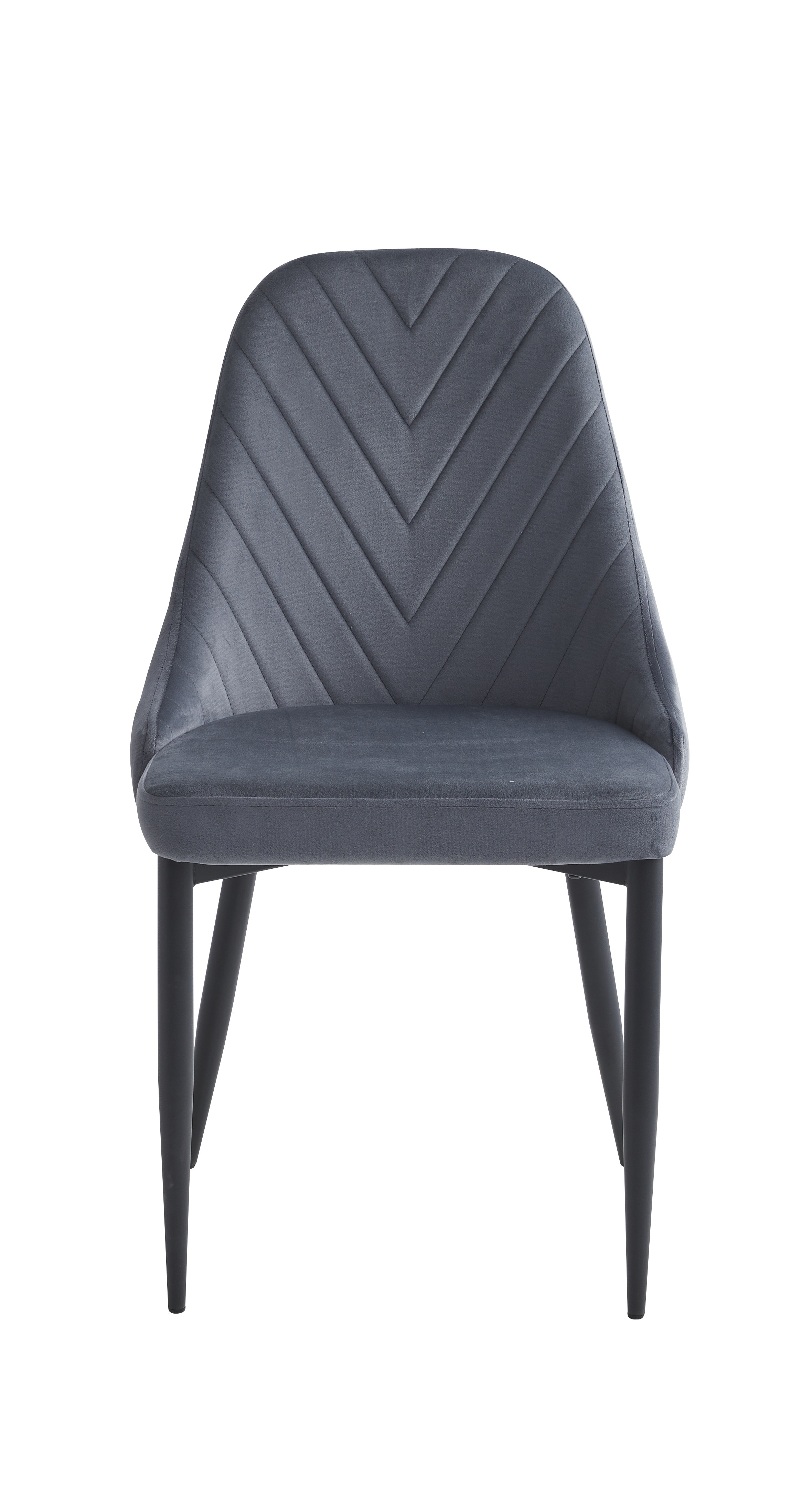 Table: Sintered Stone White Marble Top with Black Steel Legs; Chairs: Dark Grey Velvet with Stitching Details, Black Steel Legs.